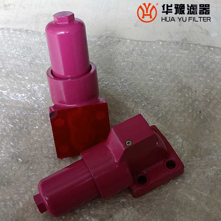 該過濾器的濾芯采用化纖過濾材質(zhì),具有過濾精度高,通油能力大,初始壓力損失小,納污量大等優(yōu)點,并裝有壓差發(fā)訊器及旁通閥。當(dāng)濾芯堵塞到進出油口壓差為0.35MPa時,便發(fā)出開關(guān)信號,此時應(yīng)更換濾芯。如果不能馬上停機或無人來更換濾芯,裝在濾芯上部的旁通閥會自動開啟,以保護系統(tǒng)。