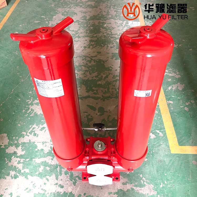 它的工作特點(diǎn)是當(dāng)一只過(guò)濾器濾芯堵塞需要更換時(shí),不需要停止主機(jī)工作,只要打開(kāi)壓力平衡并轉(zhuǎn)動(dòng)換向閥,另一只過(guò)濾器即可參加工作,然后更換已堵塞的濾芯。